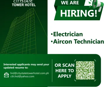 Citystate Tower Hotel is on the lookout for talented air conditioning technicians and skilled electricians to join our team!